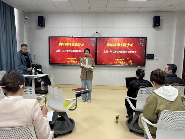 近日,经济管理学院在教学楼318举办了青年教师主题沙龙活动,邀请浙江师范大学任俊教授做了《从习得性无助到积极心理学》主题沙龙。主题沙龙由经济管理学院党总支书记斯彬彬主持,经济管理学院全体教师参加。