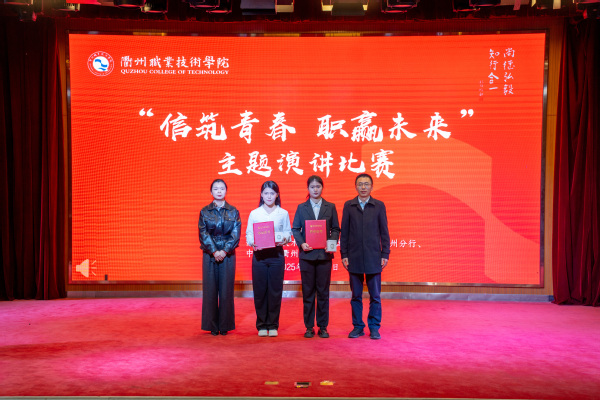 活动开始由中国人民银行衢州市分行及中国建设银行衢州分行开展主题为“珍爱信用记录 享受幸福人生”“预防电信诈骗”知识普及,为现场师生筑牢信用安全防线。随后比赛正式拉开帷幕,演讲环节中,选手们围绕诚信主题,结合自身感悟诠释“信筑青春职赢未来”的深刻内涵,真挚的表达赢得阵阵掌声。两轮“诚信知识问答”互动环节穿插其间,涵盖助学贷款、征信记录、电信诈骗等实用知识点,同学们踊跃参与让现场氛围持续升温。