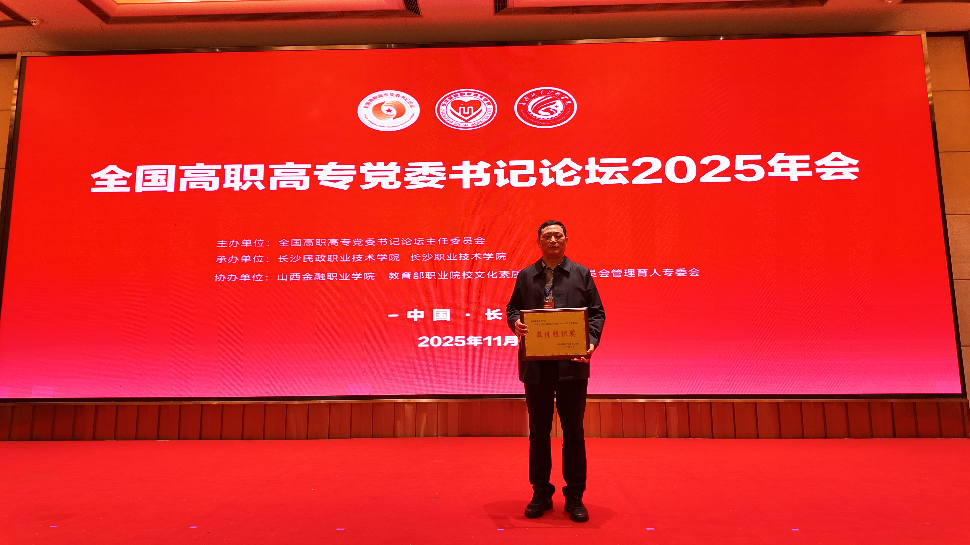 近日,全国高职高专党委书记论坛2025年会在湖南长沙召开。来自全国30个省、市、自治区的百余所高职高专院校党委书记、党务与思想政治工作骨干及专家学者共220余人,围绕“深入学习贯彻党的二十届四中全会精神,落实教育强国建设规划纲要,开创新时代高职院校党的建设与思政教育高质量发展新局面”主题,开展深度研讨与经验交流。