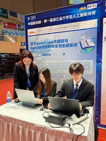 11月30日,第一届”中国移动杯”浙江省大学生人工智能竞赛决赛在杭州电子科技大学圆满落幕。本届赛事是由浙江省大学生科技竞赛委员会举办的省级A类赛事,覆盖全省67所高校,吸引了1036支高水平团队参与角逐,共有332支团队参加决赛。本届竞赛创新采用“企业出题、高校揭榜”产教融合机制,设置算法挑战赛、场景应用挑战赛、创意赛等多元赛道,全面覆盖AI技术链条。经过为期两天的PPT答辩与现场演示环节的激烈比拼,我校由信息工程学院和华友新材料学院联合组成的参赛团队在多个赛道中表现卓越,最终荣获一等奖1项、二等奖2项的优异成绩,充分展示了我校在人工智能人才培养方面的显著成效。