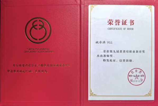 近日,黄炎培职业教育奖评选表彰工作办公室公布了第九届黄炎培职业教育奖获奖名单,我校党委委员、副校长姚水洪教授荣获全国第九届黄炎培职业教育“杰出教师”奖荣誉称号。