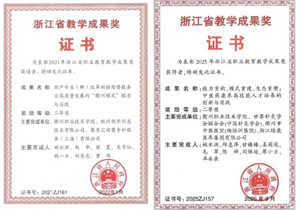 他作为省级护理专业带头人,在专业建设方面,针对老龄化背景下“一老一小”康养人才新需求、新趋势,深入行业调研分析,精准定位,优化结构,成功申办了针灸推拿、中医学国控专业,中外合作护理专业项目。所带专业先后入选浙江省优势专业、国家骨干专业,护理专业群入选省级高水平专业群建设,并以“优秀”等次通过验收。在团队建设方面,针对医学院教师队伍断档问题,加强青年教师引育,受聘担任校年青干部人才库导师,建平台、引项目、传帮带,助力一批青年教师成长为教学能手、专业主任、青年领军人才和学校中层干部。领衔的护理教学团队成功入选浙江省中高职一体化教师教学创新团队和省职业教育教师创新团队。在基地建设方面,负责的杨继洲针灸传承创新基地入选“科创中国”创新基地(全国高职院校唯一入选),智慧康养虚拟仿真示范性实训基地项目获教育部重点任务备案建设。他引领职教改革创新,收获一项项突破性成果,连获两届省级教学成果二等奖。