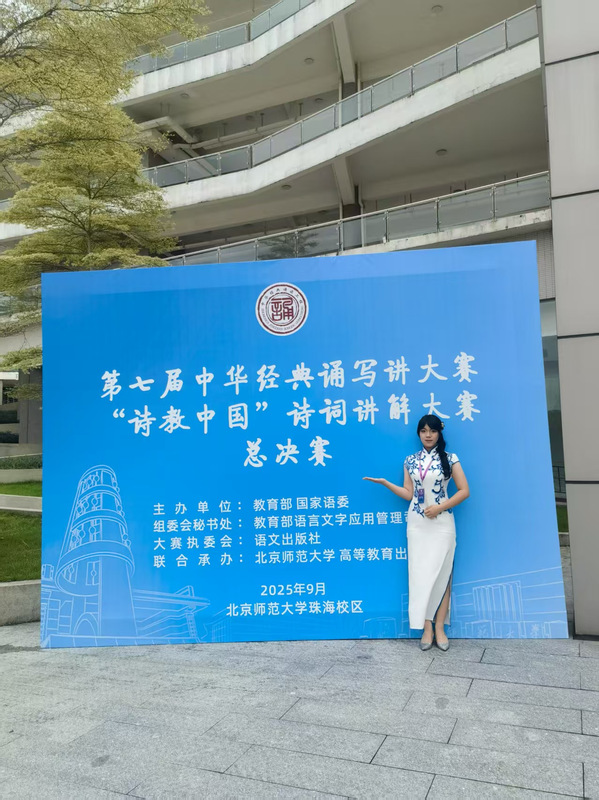 近日,第七届中华经典诵写讲大赛“诗教中国”诗词讲解大赛评选结果正式公布。我校应用英语专业学生高玉洁(指导教师:龚慧兰)凭借其精心创作的讲解作品《秋词(其一)》,在激烈竞争中脱颖而出,荣获全国二等奖。这是我校继去年在该赛事取得国赛二等奖之后再次获得的国家级高层次奖项。