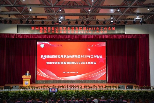 为深入学习贯彻党的二十大、二十届三中全会、四中全会及全国教育大会精神,全面落实《教育强国建设规划纲要(2024-2035年)》关于“打造产教融合的职业教育体系”的核心任务,共商职业教育高质量发展新路径,11月20日至21日,浙闽赣皖四省边际职业教育联盟2025年工作会议在武夷山职业学院举行。
