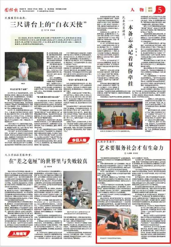 作为民进会员,潘宇发挥专业优势,策划组织了“美育进社区”“非遗在校园”等志愿服务系列活动。2024年,他带领团队承担了“马叙伦与江山史料博物馆”的策展设计任务,历时一年查阅大量史料、走访多地考察后最终完成展陈方案,助力该馆成为浙江省多党合作传统教育的重要基地。
