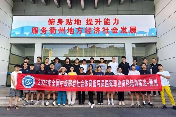 7月2日至7月8日,浙江省2025年首期攀岩中级社会体育指导员培训班在衢州职业技术学院顺利举办。本次培训共有27名学员参加培训和鉴定,是省内截至目前举办的规模最大的攀岩中级社会体育指导员培训。