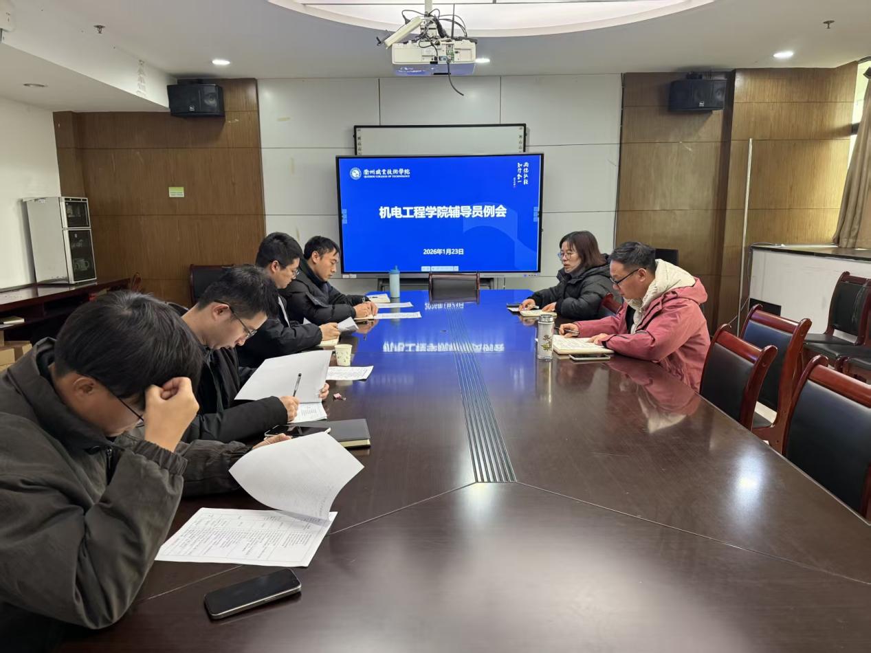 1月23日上午,机电工程学院在机电307会议室召开期末辅导员工作例会,旨在明确新学期学生工作方向,凝聚团队合力,助推学院高质量发展。学院党总支书记朱峻、副书记叶云霞及全体辅导员参加会议,会议由叶云霞主持。