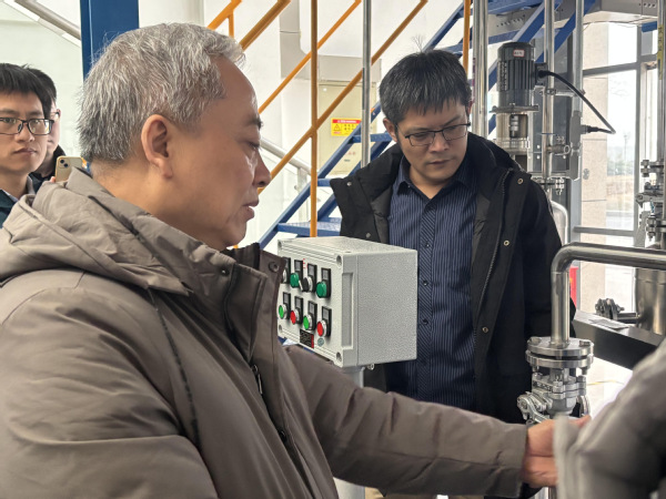 在镍湿法冶金半实物仿真装置现场,魏总结合自身四十余年的行业积淀,为我院师生详细讲解了镍湿法冶金的全工艺流程,让师生对产业实际生产流程有了更清晰、更系统的认知。结合半实物仿真工厂的建设实际,魏总重点围绕设备装置的布局优化、功能适配,以及仿真软件开发的实操性、行业贴合度等方面展开专业指导,提出了一系列具体且可落地的优化建议,为仿真工厂后续的完善与升级指明了方向。