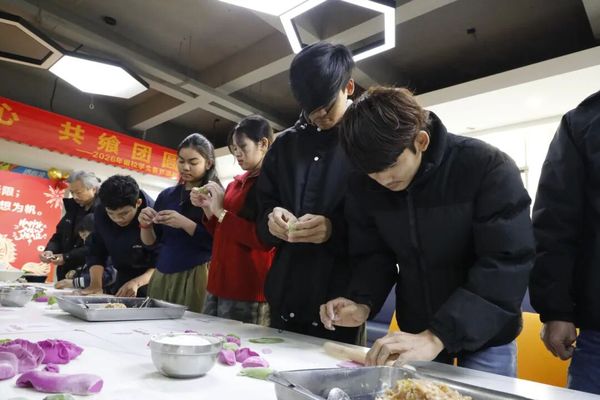 “我的情不移,我的爱不变,月亮代表我的心……”2月11日小年夜,我校食堂里飘出略显生涩却温情满满的中文歌曲,校党委委员、宣传部部长孔庆红,国际交流合作处、信息工程学院、学工部、工会、校书法协会相关人员,同13名来自柬埔寨的留学生们欢聚一堂,写福字、包饺子,话乡愁……“丝路连心 共飨团圆”,异国学子以歌寄情,以饺载意;墨香未干的福字映着笑靥,面皮裹住的是我校师长与同窗递来的滚烫心意。留学生们在浓浓年味里,感受中华传统文化,更触摸到一份来自学校的温情关怀。