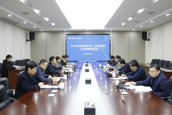 3月19日上午,市人大常委会党组书记、主任吴国升一行来校调研并召开座谈会,校党委书记祝建东,党委委员、副校长徐浪静、姚水洪陪同。