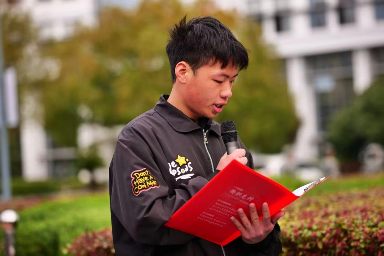 25级学生代表姚本浩在国旗下发表演讲。他结合新时代机电学子肩负制造强国、科技强国的使命,呼吁将爱国情、强国志融入学习与实践。他向全体同学发出三点倡议:一是坚定信仰,做红心向党的有志青年;二是勤学苦练,做精益求精的有技青年;三是挺膺担当,做强国建设的有为青年,号召大家以青春为轴、技能为翼,践行“强国有我,机电先行”的誓言。