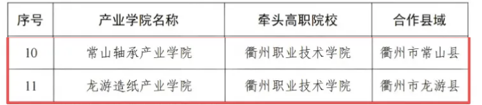 常山轴承产业学院与龙游造纸产业学院入选第二批县域产业学院立项建设名单。常山轴承产业学院于2024年建成,由我校联合衢州数字工业学校等本地职业院校,协同浙江先导精密机械有限公司、常山皮尔轴承有限公司等企业组建。学院始终坚持“对接产业需求、整合校地资源、共育技能人才”的办学核心,专注培育精密制造、智能加工等领域的高素质技术技能人才。龙游造纸产业学院于2025年正式组建,由我校携同浙江省衢州工商学校、浙江恒达新材料股份有限公司成立。学院扎根龙游特种纸及绿色纸基新材料产业,着力打通中高职一体化人才培养衔接通道,聚焦工艺技术、生产管理、绿色研发等岗位急需,为造纸产业绿色化、高端化转型培养本土化、专业化的技术工匠与管理人才。