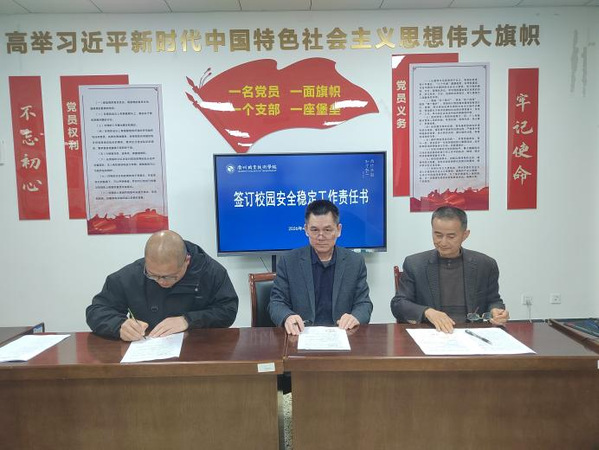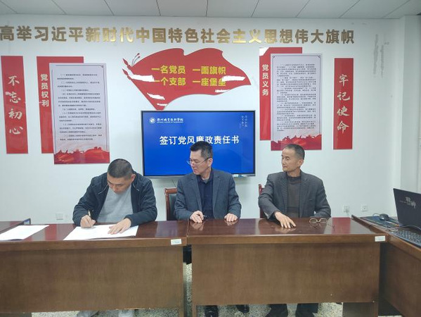 会议期间,学院逐级签订党风廉政建设责任书、校园安全稳定责任书、实训室安全责任书,进一步明确责任分工,强化责任落实。