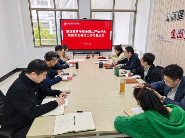 4月14日上午,继续教育学院召开全面从严治党和校园安全稳定工作专题会议。学院党支部书记、院长戚景云主持会议,学院全体党员参加会议。
