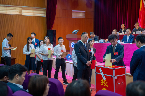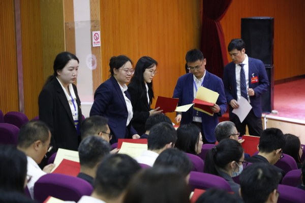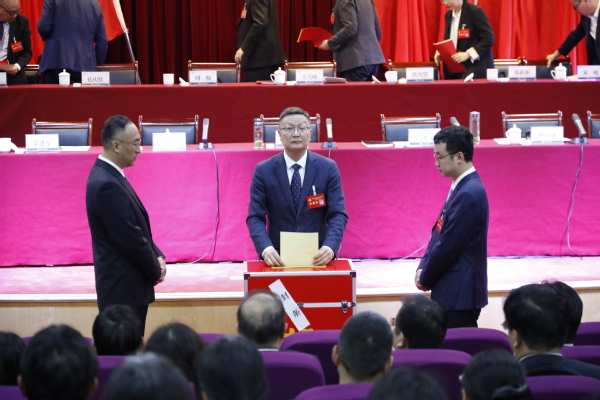 在总监票人和监票人的监督下,到会的122名代表按照要求,认真填写选票,并依次在投票箱前投下了自己庄严神圣的一票。