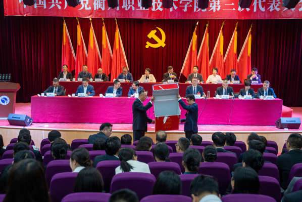 何百通同志宣读中国共产党衢州职业技术学院新一届委员会委员候选人名单和中国共产党衢州职业技术学院纪律检查委员会委员候选人名单。其中,党委委员候选人人选9名,纪委委员候选人人选7人。